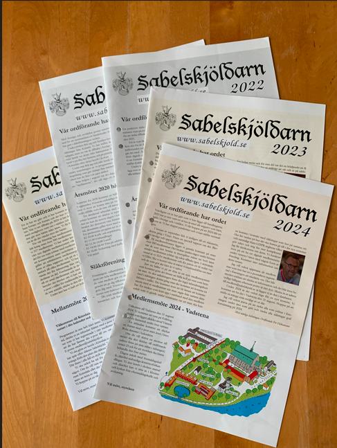 Tidningen Sabelskjöldaren kommer ut 1 gång om året. På Svenska och Engelska